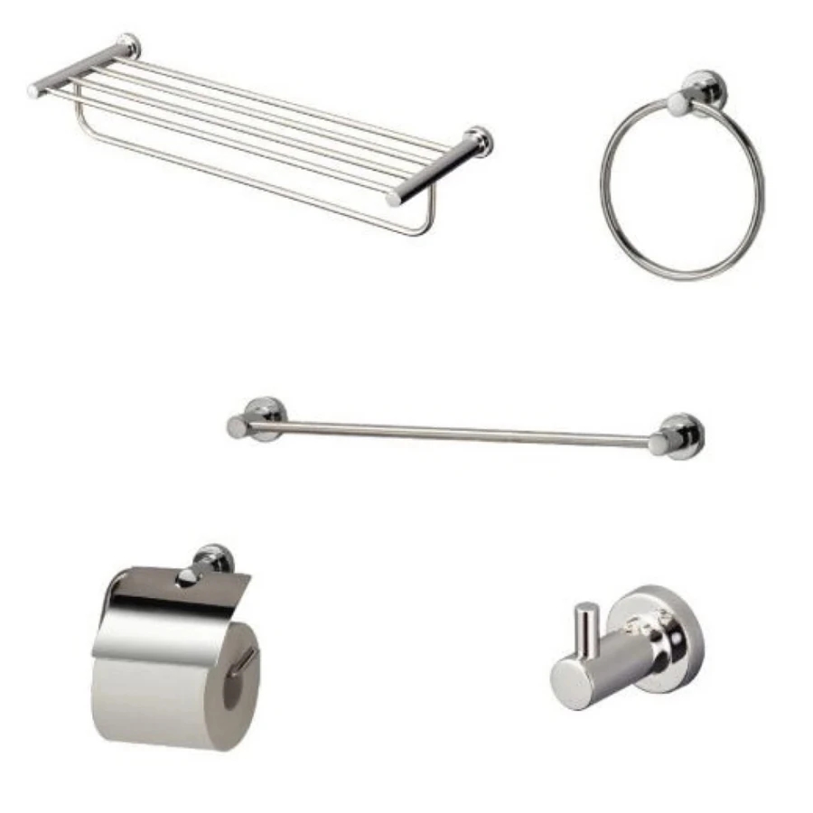 Bộ 5 sản phẩm L (tròn): lô đựng giấy vệ sinh, vòng treo khăn, móc áo, thanh vắt khăn & thanh vắt khăn 2 tầng (kích thước:600mm)