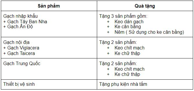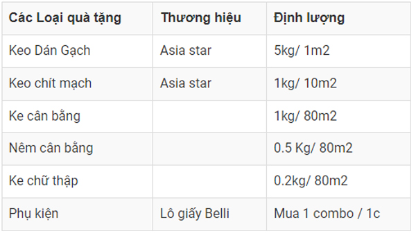 Lưu ý: Định mức chi tiết danh sách quà tặng: