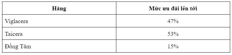 GẠCH TRONG NƯỚC CHIẾT KHẤU LÊN ĐẾN 53%
