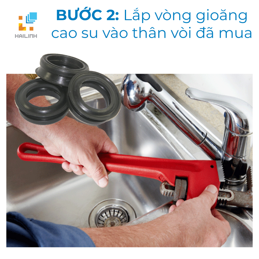 Bước 2: Lắp vòng gioăng cao su vào thân vòi đã mua.