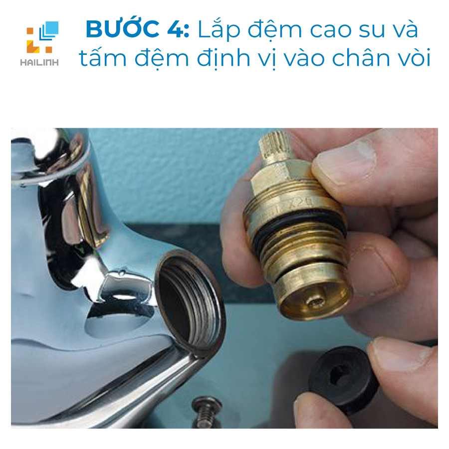 Bước 4: Lắp đệm cao su và tấm đệm định vị vào chân vòi.
