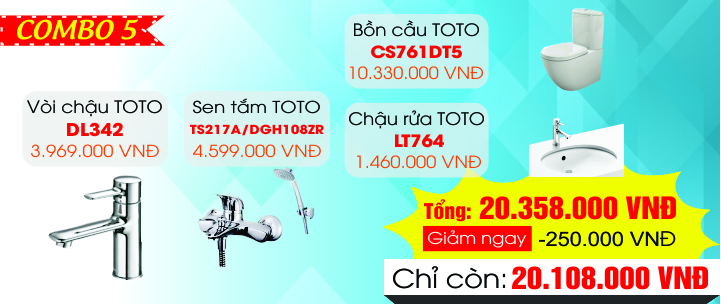 Giảm ngay 250.000 vnđ khi mua combo 5 thiết bị vệ sinh TOTO tại Hải Linh