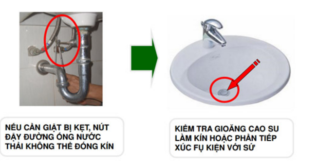 – Nút đậy đường ống thải cũng không thể đóng kín nếu cần giật bị kẹt.